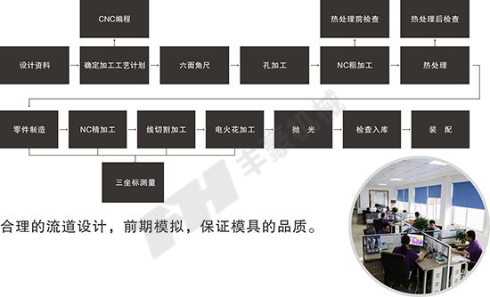 丰豪机械的工程师设计经验丰富,具有综合开发理念。工程师们秉持“设计乃模具关键”之宗旨,非常重视模具制作工序。精心设计,力图打造具有使用年限最长、维修次数少的模具。